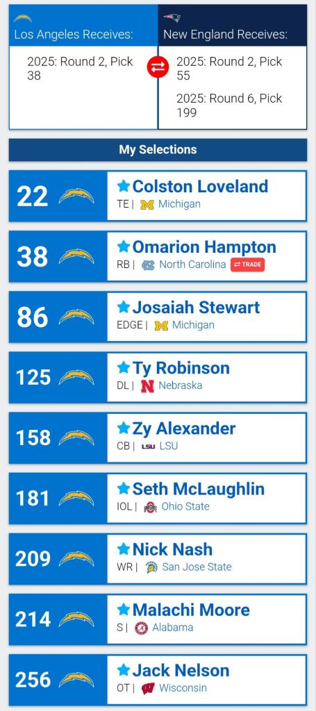 Posted on March 27, 2025, in NFL and tagged AFC West, CHARGERS, LOS ANGELES, NFL Draft, NFL MOCK DRAFT. Bookmark the permalink. Leave a comment.