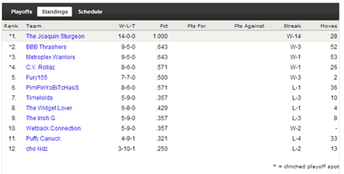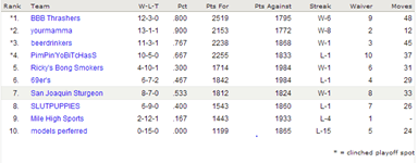 I have a new LOCAL fantasy football “gentlemen’s” league now. It’s with two of my neighbors and a group of friends. I joined this league last year and got my ass kicked. It is a PPR league (points per reception) / 3 starting Wide Receivers, which was really dominated by running Quarterbacks scoring (where I had Cutler and Rivers at QB). I was not used to this custom scoring format and lost a lot of very close games. And I still have low fantasy-flow and no clout…